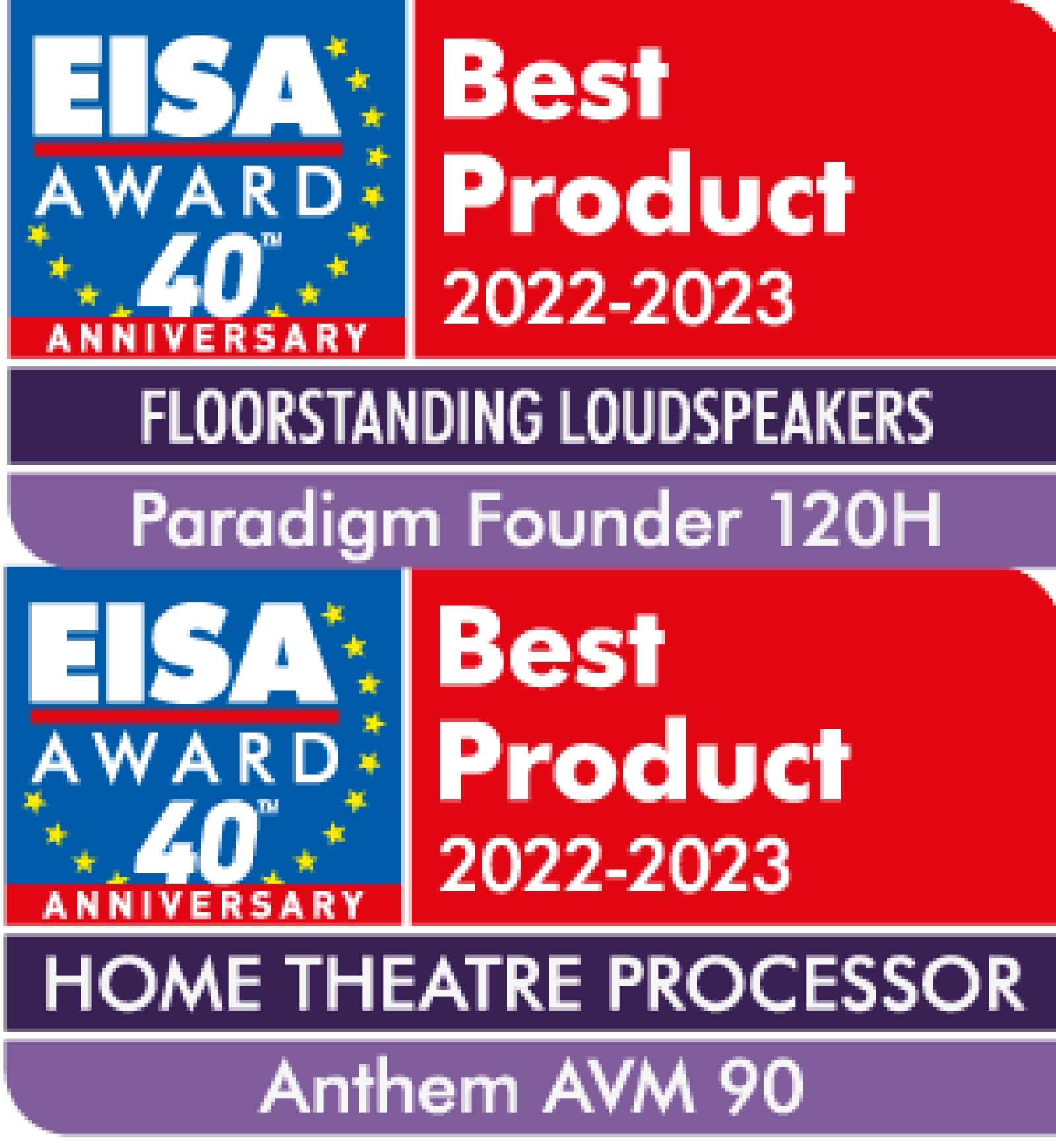 Büszkén tudatjuk, hogy két általunk forgalmazott termék is elnyerte kategóriájában a Legjobb Termék EISA díjat. A Paradigm Founder 120H-nak az álló hangsugárzók, míg az Anthem AVM 90-nek a házimozi processzorok kategóriájában sikerült maga mögé utasítani minden vetélytársat.
