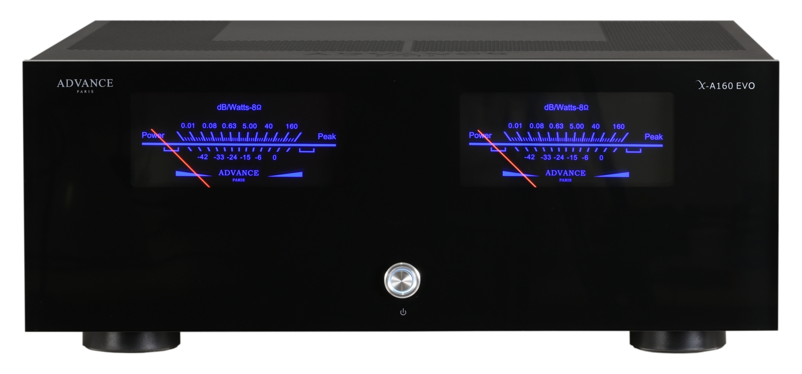 Az X-A160EVO szerkezeti elemeit egy több rekeszre osztott masszív fémházba építettük, amely megfelelő védelmet és árnyékolást nyújt a készülék számára. Az alkatrészeket gondosan választottuk meg és válogattuk ki. A nagy teljesítmény (800 watt) leadására képes toroid transzformátor egy nagy áramot igény-lő bipoláris tranzisztortelepet szolgál ki árammal, amely lehetővé teszi az X-A160EVO magas kimenő teljesítményét. Az X-A160EVO AB osztályú üzem-módban csatornánként 160 W teljesítményt ad le, ugyanakkor egy váltókapcsoló révén az erősítő az első néhány wattos teljesítményig A osztályban működik. Ezen a teljesítmény szinten túl az erősítő automatikusan AB osztályú üzemmódra vált át. Akár Hi-Fi erősítő-ként, akár erőgépként egy nagy teljesítményű házimozi rendszer részeként használjuk is, teljesítménye, dinamikája, stabilitása és tekintélyt parancsoló hangzása minden esetben bőségesen elég marad. Bárki élvezheti a kivételes hangzásminősé- gét. A hátlapján egy kapcsoló segítségével kapcsolhatja be vagy ki a kivezérlésjelzők világítását. Egy-egy pár RCA vagy szimmetrikus (XLR) aljzat segítségével az X-A160EVO bármely előerősítővel összekapcsolható.