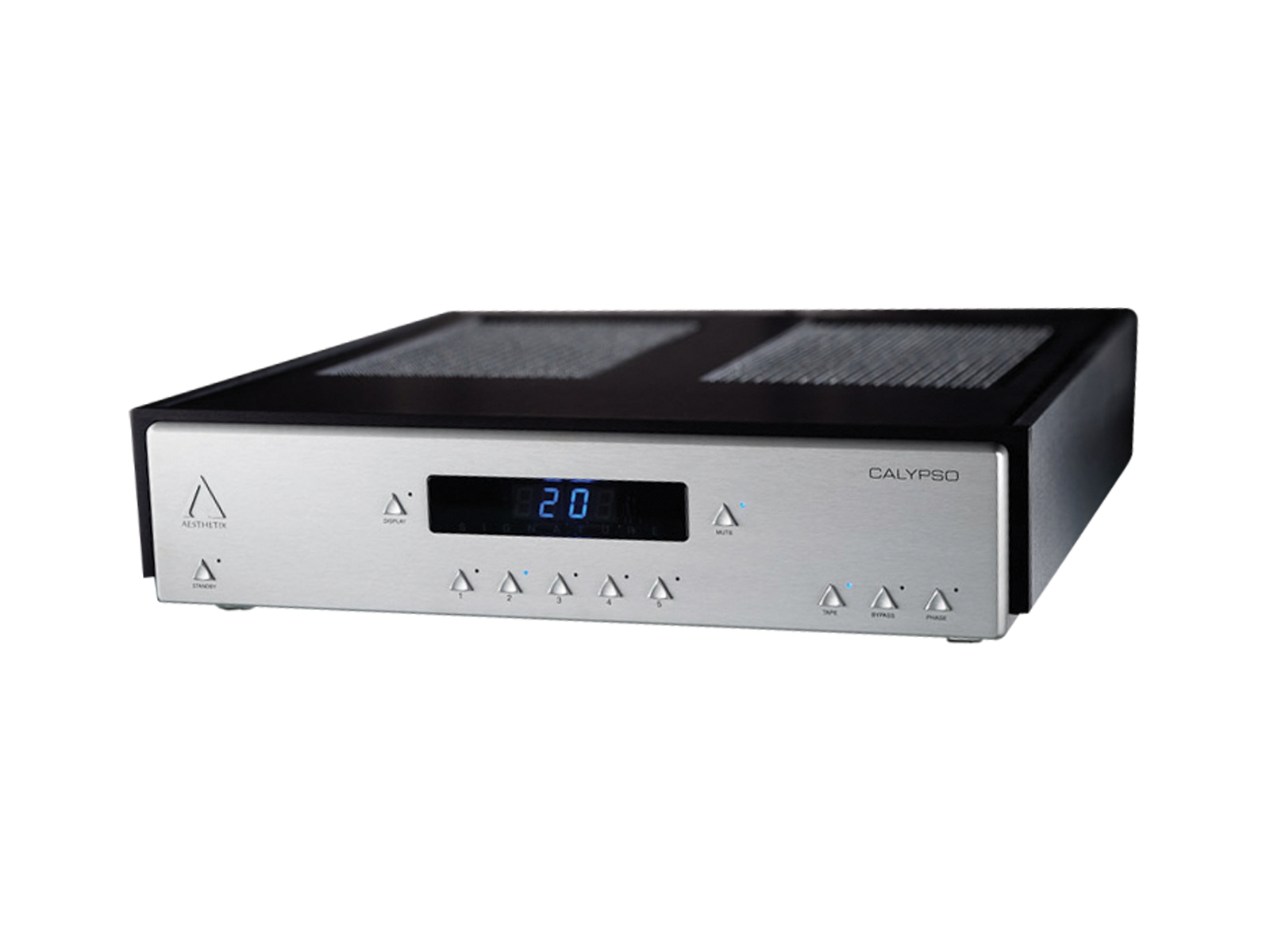 A CALYPSO egy teljesen csöves vonalszintű erősítő, amely audió ésházimozi rendszerek erősítőjeként egyaránt kiválóan alkalmas. A bemenettől a kimenetig teljesen szimmetrikus felépítésű áramkörei, az aszimmetrikus (RCA) bemenő jeleket a készüléken belül szimmetrizáló elektronika igen alacsony közös módusú zajt és letisztult hangzást eredményeznek. Az innovatív diszkrét kapcsoló üzemű elelnállásrácsból megépített hangerő szabályozó minden hangerőn a lehető legmagasabb értékre növeli az erősítő felbontását. Mindegyik bemenet aszimmetrikus (RCA) és szimmetrikus (XLR) változatban is ki van építve a nagyobb rugalmasság érdekében. Kiiktatható a házimozi üzemmód, beállítható az abszolút fázis, a készülék valamennyi funkciója távvezérelhető. A teljesen alumíniumból készült készülékház merev, akusztikai szempontból néma, ugyanakkor szemet gyönyörködtető látványt nyújt.